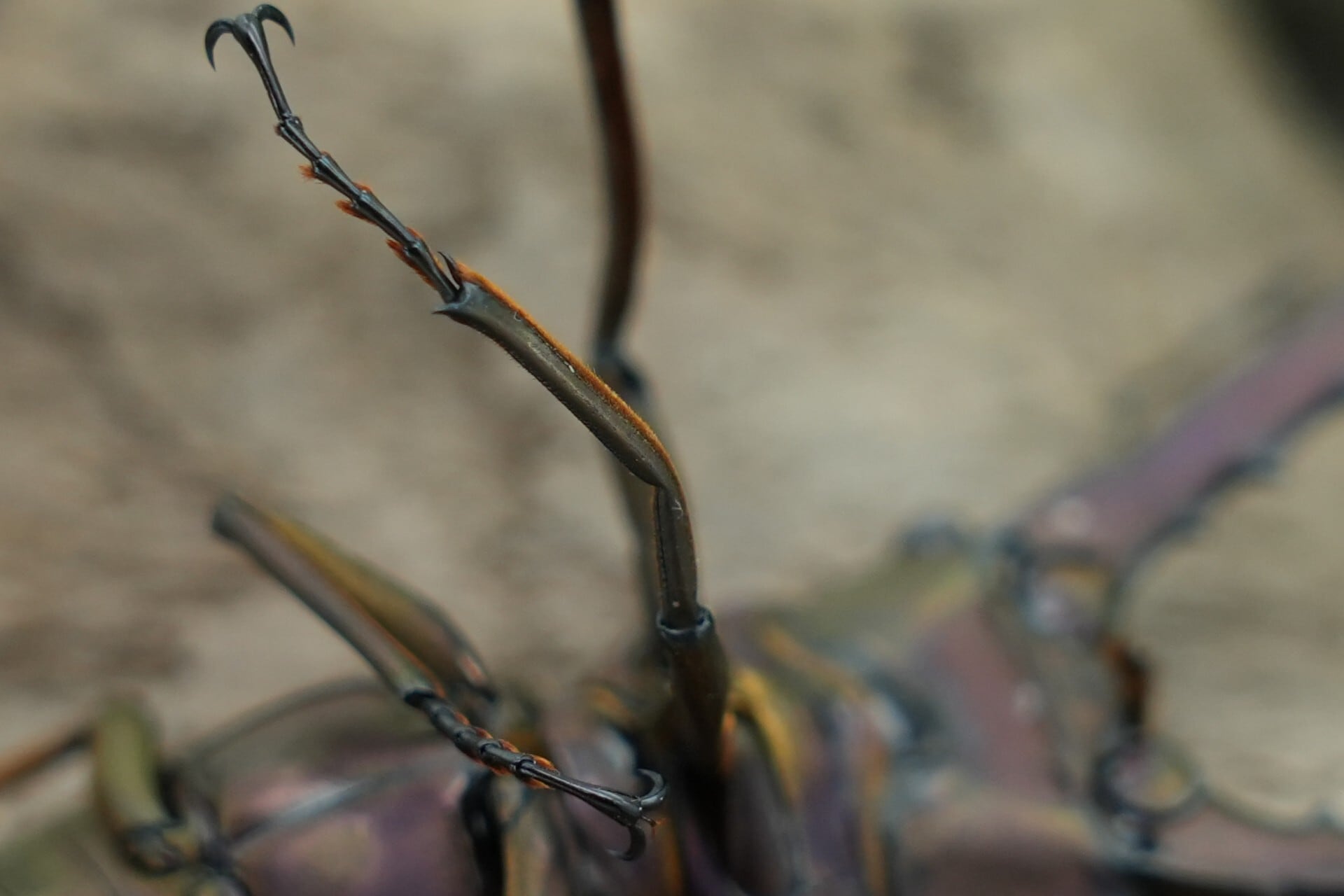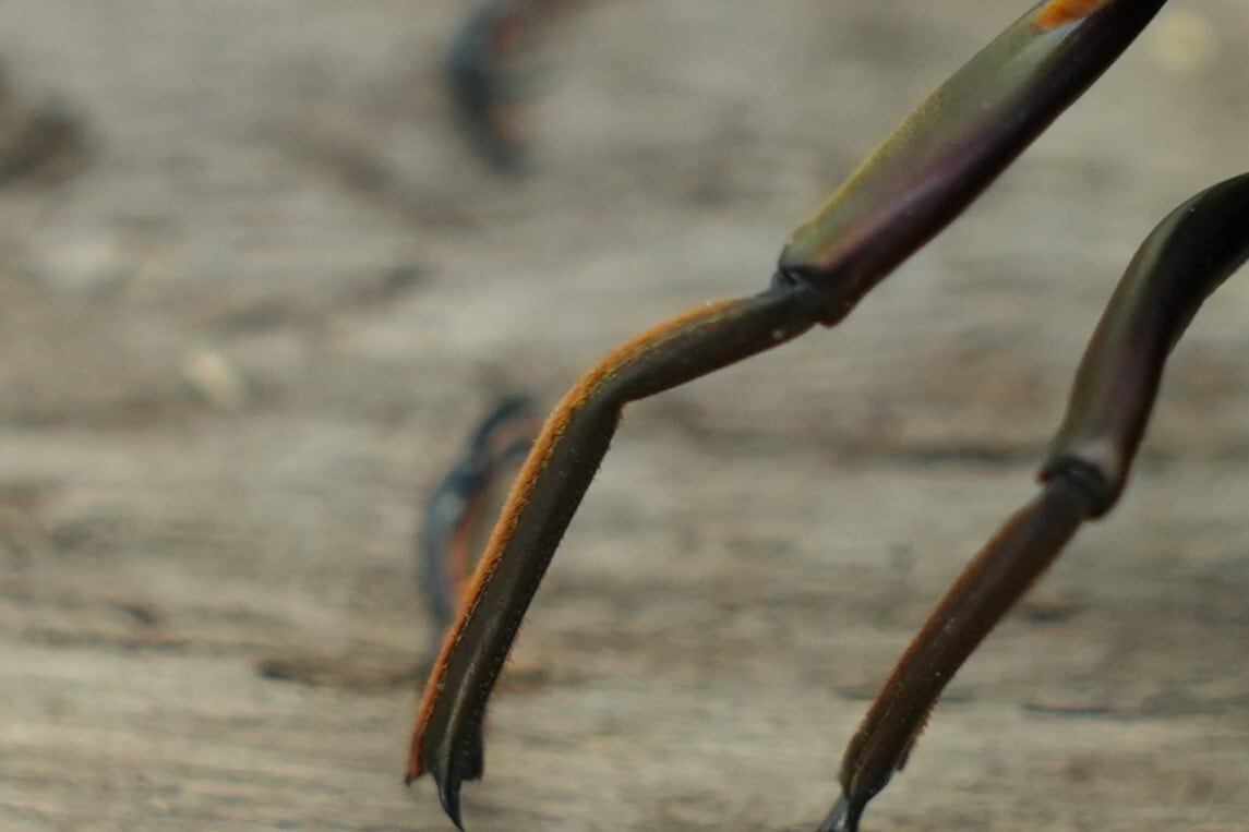 ♂の左前脚が曲がっています。